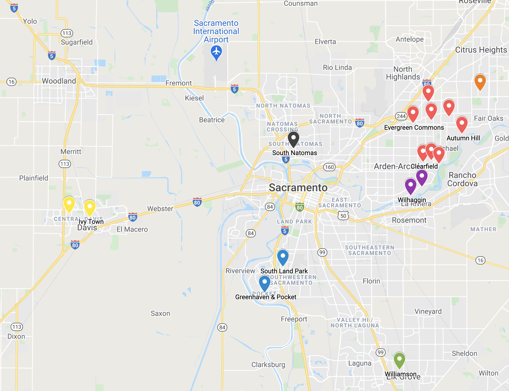 A small grouping of Streng Bros homes near schools and parks. Surrounded by some of Sacramento’s most premier neighborhoods and close to William B. Pond park with American River Trail access.